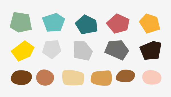 We have a collection of simple shapes designed to complement our logo’s blend of sharp and organic edges.
