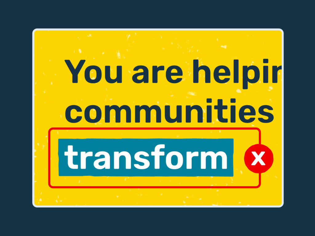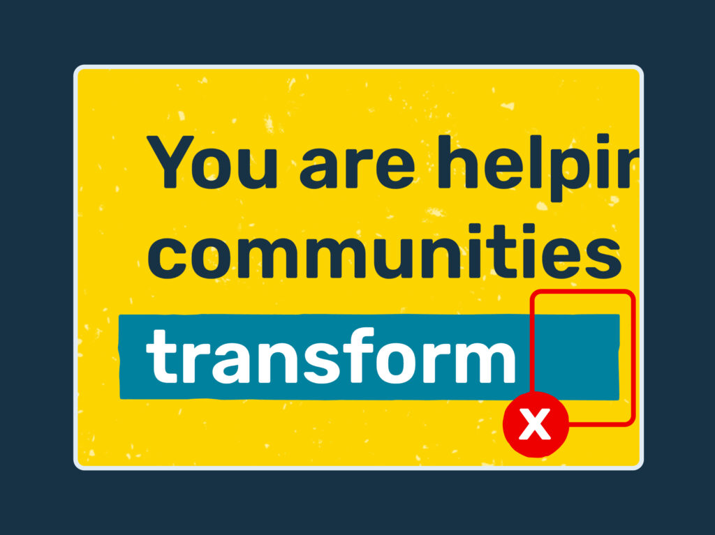 We use text blocks to highlight certain words and phrases. The text block colour should always contrast with the background and the text colour used.