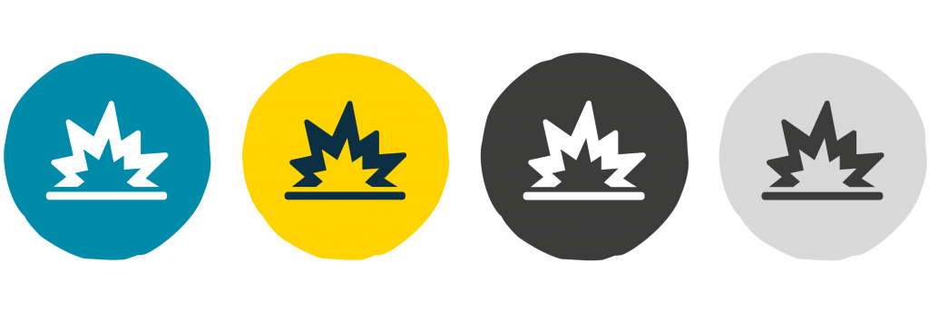 - when using icons out of the circle they must be shown in 90% black only. Use sparingly.